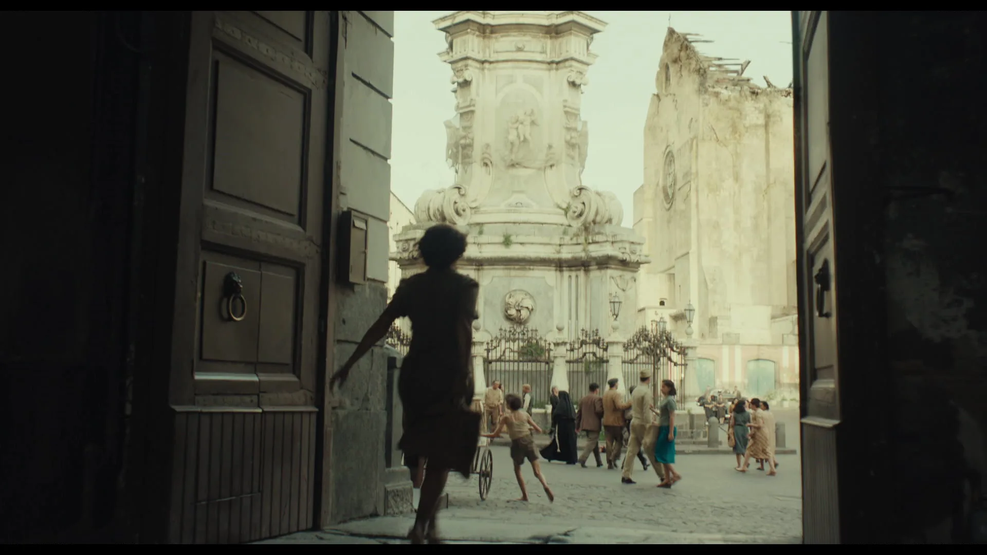 Beyond these major transformations, detailed work included adding realistic reflections on the train windows—a key visual element in the story—and removing anachronistic elements from the locations. Frame by Frame also recreated views of Naples featuring bombed-out churches and the drama of wartime explosions, deepening the audience’s immersion in the historical setting.