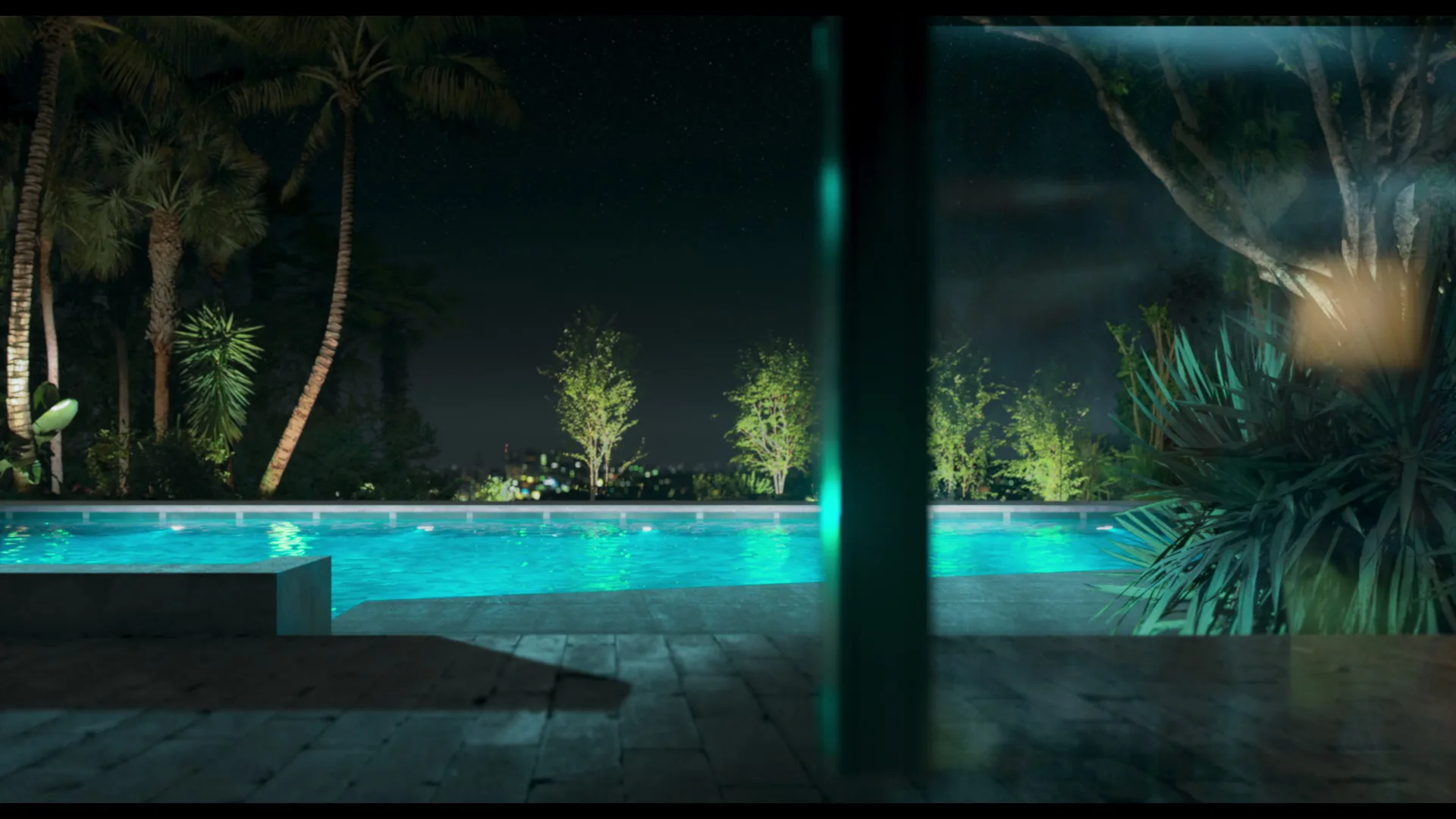 Reconstructing the villa was a precision-driven effort involving the 3D, matte painting, and compositing teams in constant collaboration. The entire exterior location, including the pool, was recreated using advanced CG and visual integration techniques to achieve a realistic and immersive result. Special attention was given to the pool caustics, which were refined with relighting techniques to reflect naturally on the characters and surrounding environment. This approach ensured a seamless blend of real and digital elements, enhancing the visual coherence of the entire scene.